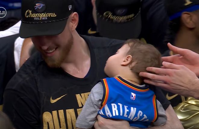 雷速体育6月23日讯 今日NBA总决赛G7雷霆103-91击败步行者成功夺冠。电竞下注 赛后前雷霆球员杜兰特更新社媒庆祝雷霆夺冠:“小哈滕睡着了哈哈,恭喜雷霆。”凯发 在冠军颁奖典礼上,哈滕抱着自己的孩子一起领奖,但是小哈滕已经进入了梦乡jxf188